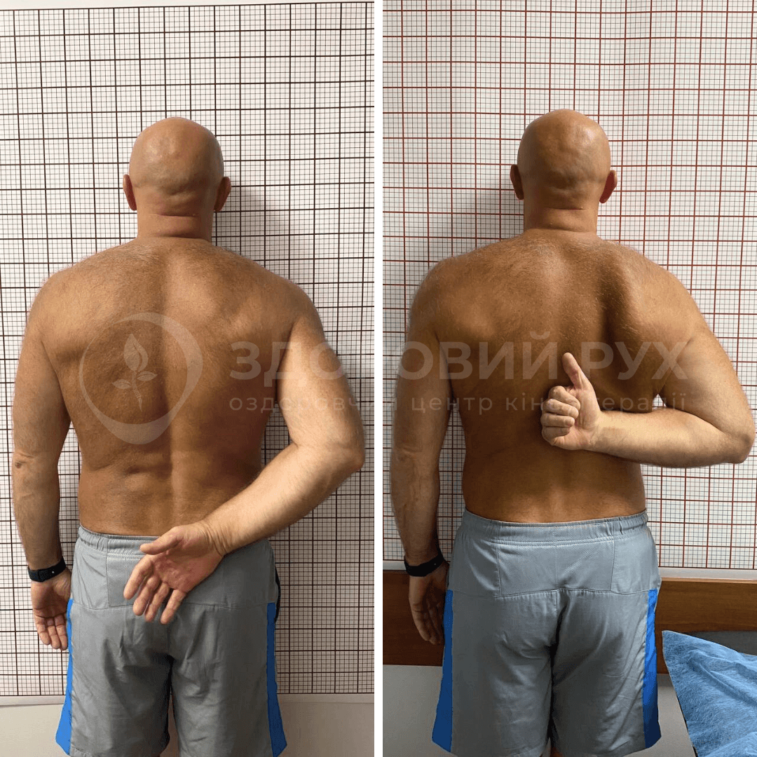 Пацієнт звернувся зі скаргами на біль і обмеження руху в плечовому суглобі. Було складно піднімати руку та виконувати навіть прості побутові дії, наприклад одягатися.