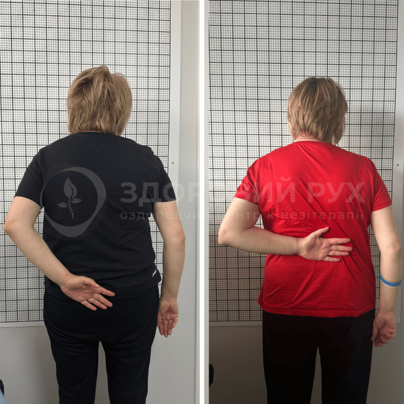 - • За 12 занять вдалося прибрати біль і значно збільшити амплітуду руху в плечі.