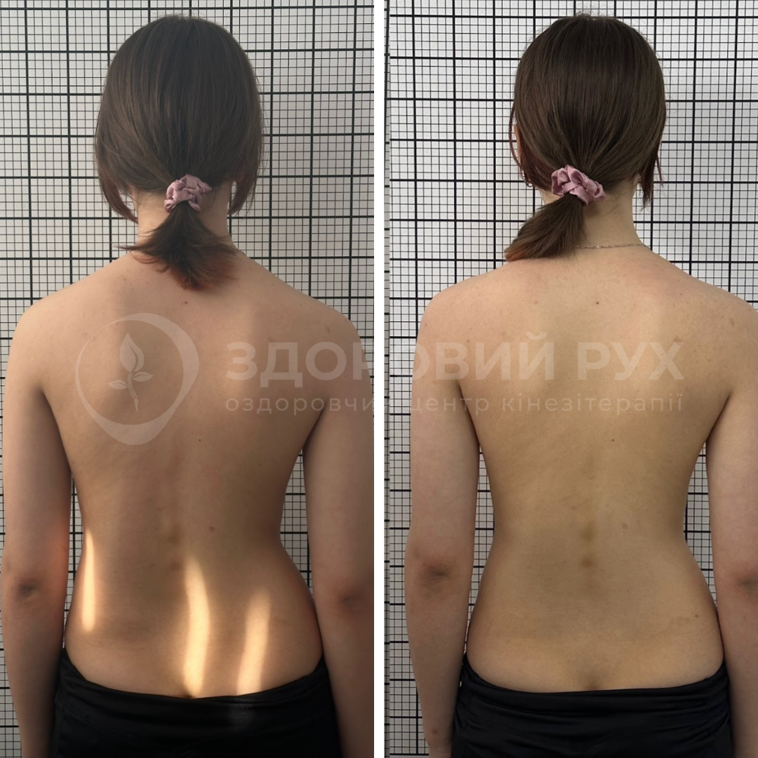 - Пацієнтка продовжує займатися для подальшої корекції та стабілізації результату.