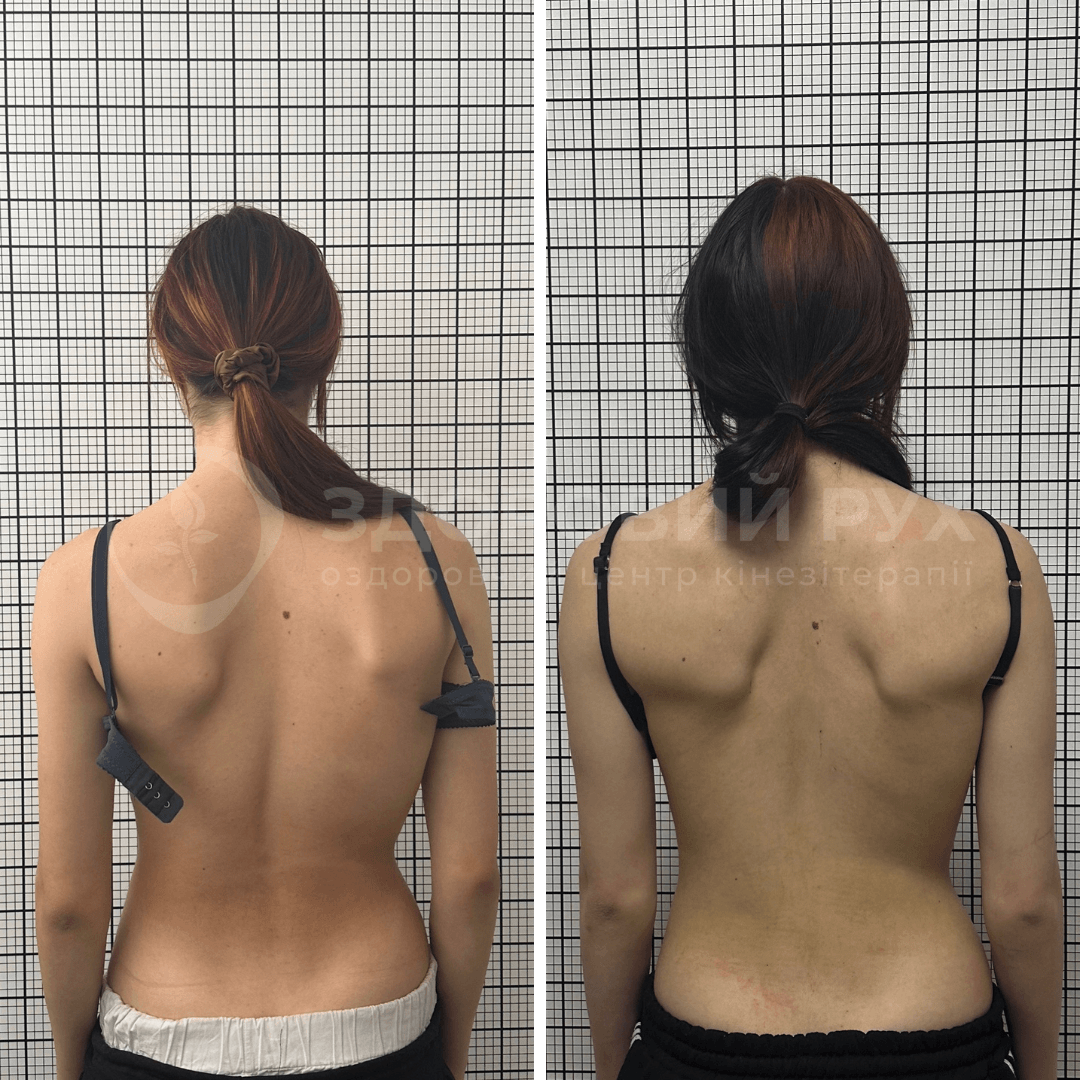 - На фото пацієнт ДО і ПІСЛЯ 2-х курсів кінезітерапії + масажу в центрі ЗДОРОВИЙ РУХ